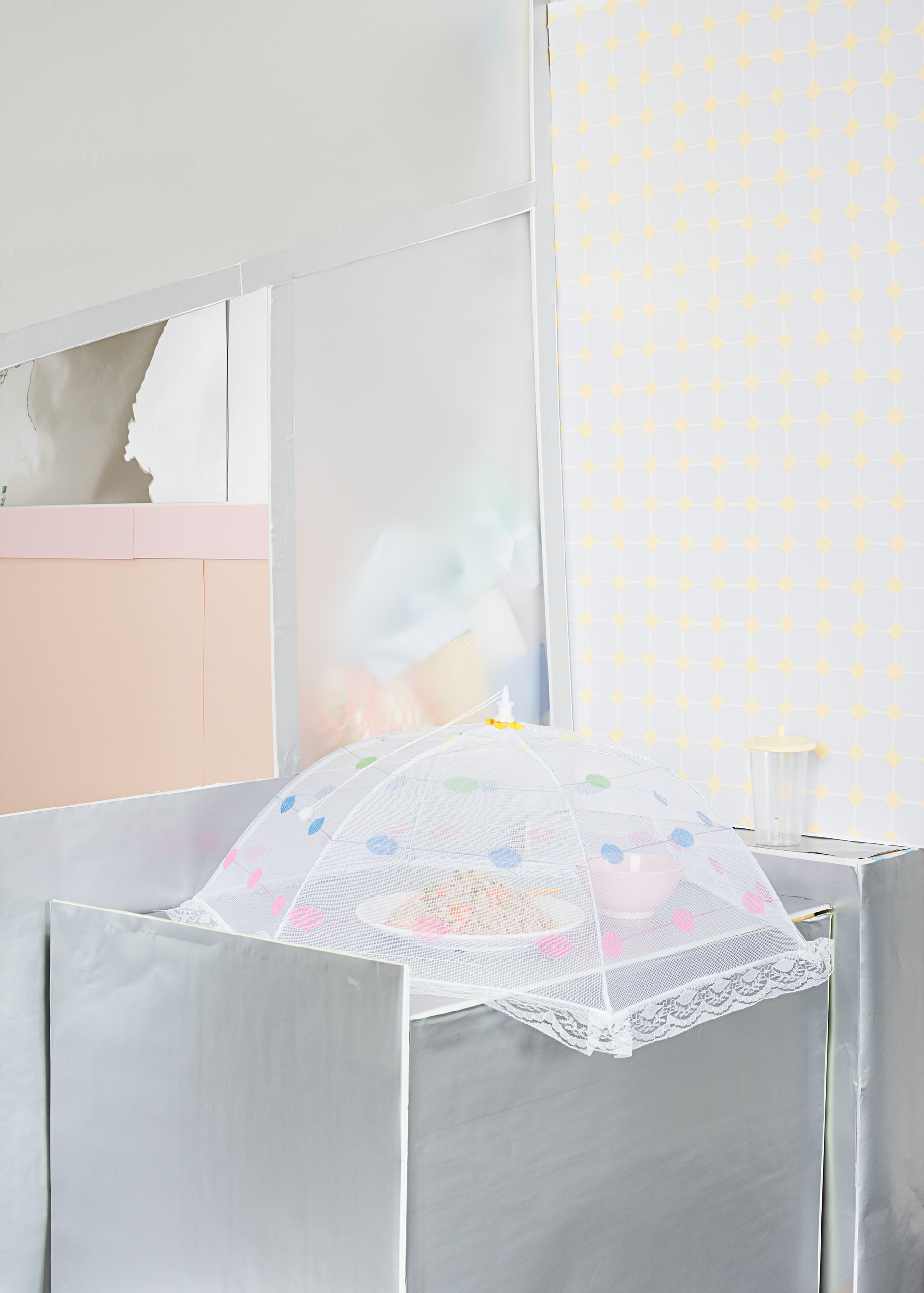 The mimicry of the Hong Kong café, replete with décor, ornaments, plastic utensils in Ong’s stilted foam and card life-size sculptures is captured in her photographs, adding a further layer of distance between the artist and her capturing the intangible essence of “home”. Ong uses this replication to study the phenomenon of a whole generation of international residents and the idea of belonging.