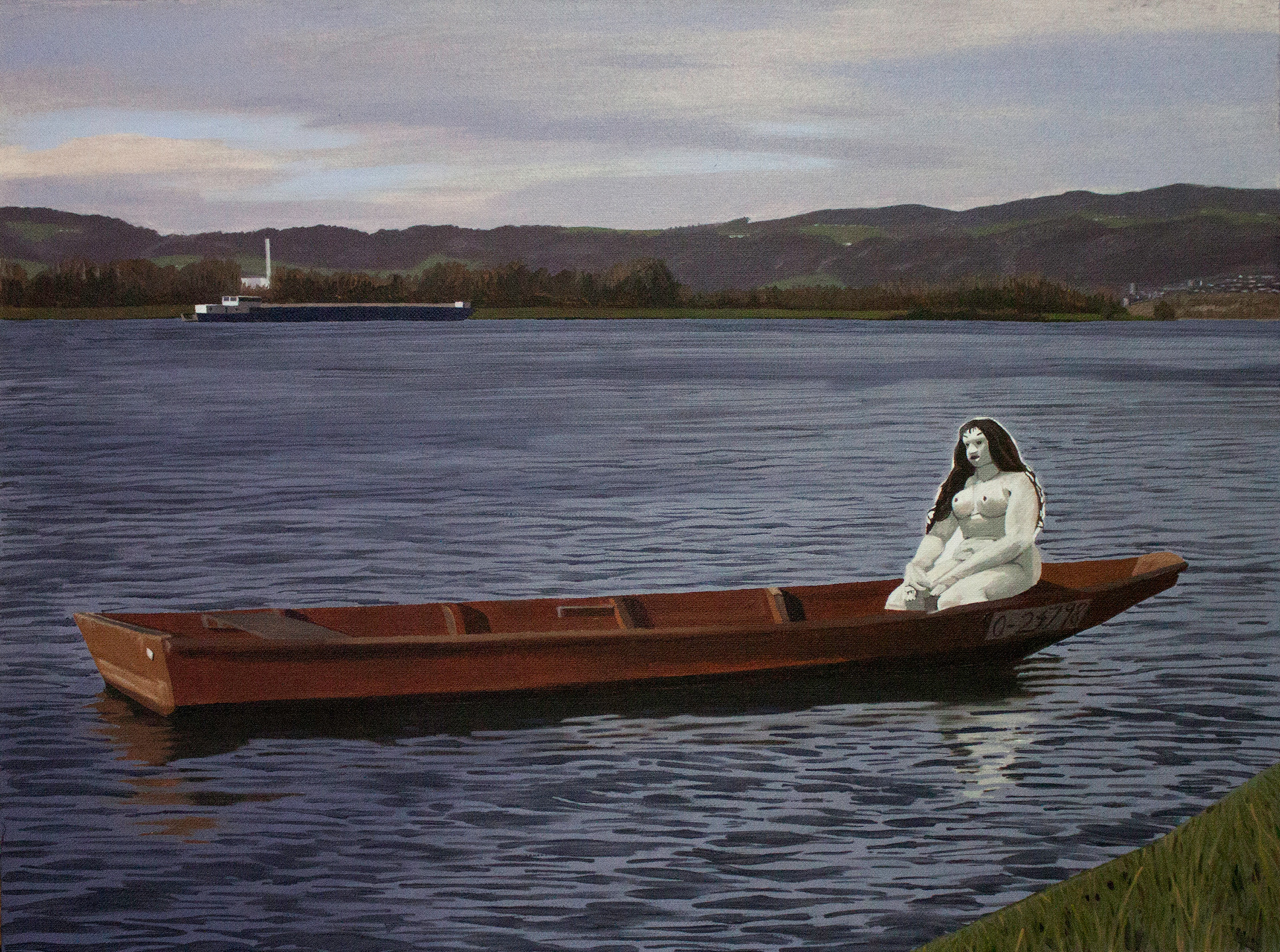 Oskar Kokoshka's 'Alma Mahler' doll relaxing on the Danube near Linz, AD1951