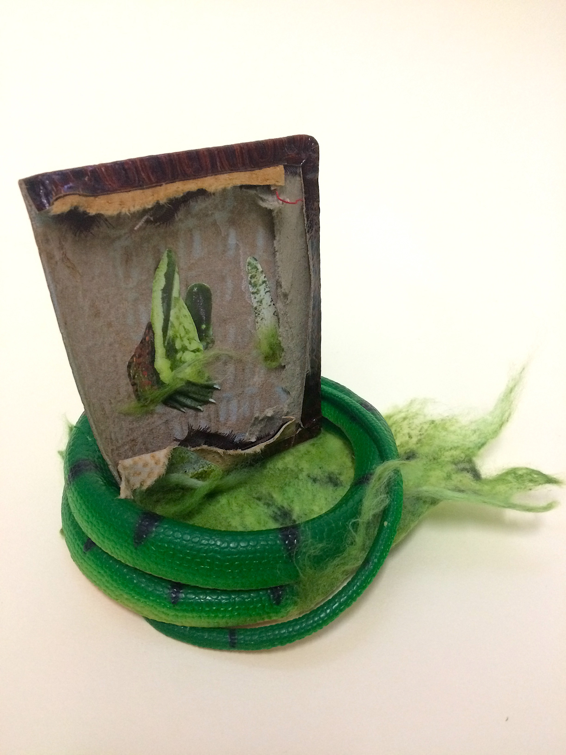 collage and snake skin on paper