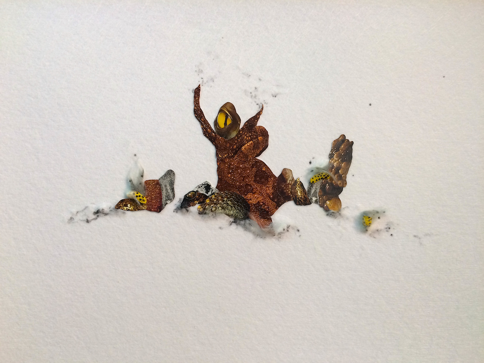 Collage and snake skin on paper