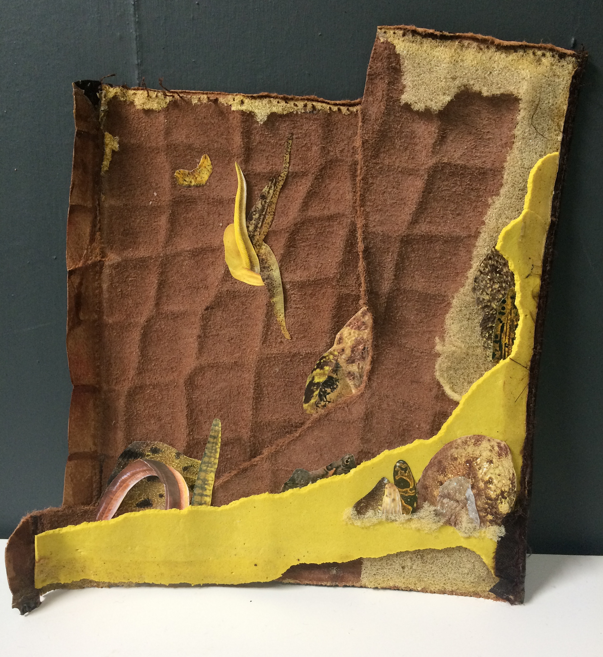 Collage on leather and foam