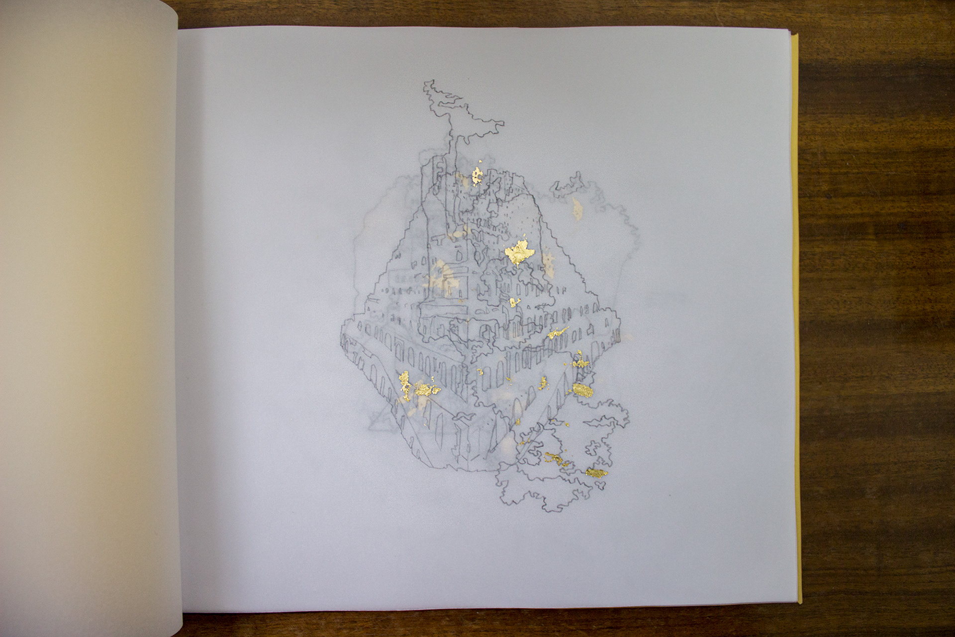Hand bound artist book made of 5 drawings with gold leaf detail